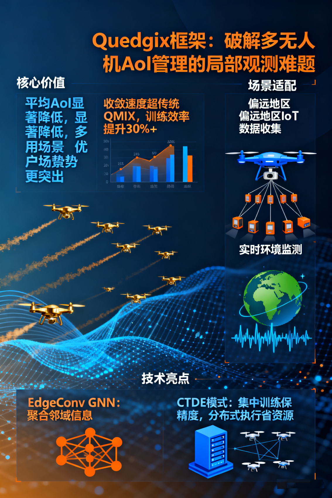 主要内容: 本文提出了 Qedgix 框架,该框架结合了图神经网络(GNN)和 QMIX 算法,以实现在未知场景下用户 Aol(信息年龄)的分布式优化。该框架利用 GNN 从无人机、可观测范围内的用户以及可通信范围内的其他无人机中提取信息,从而实现有效的无人机轨迹规划。