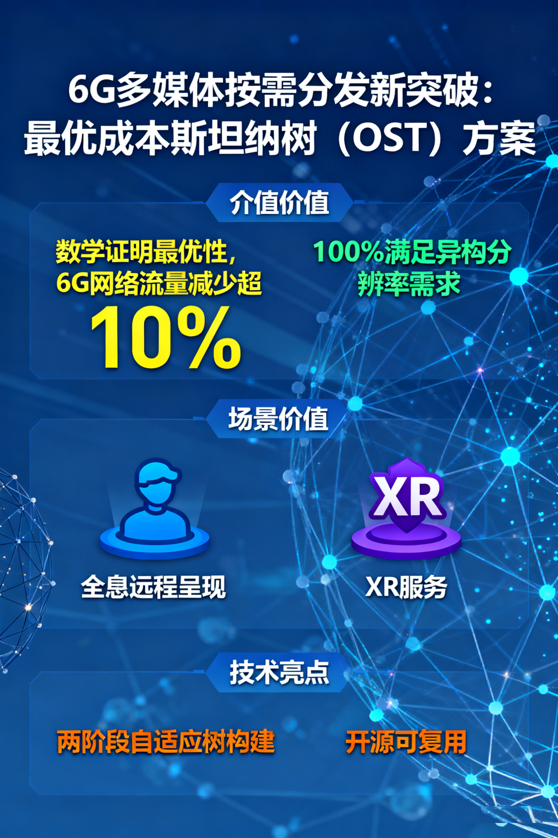 主要内容: 本文提出了一种两阶段动态规划增强的按需斯坦纳树(OST)算法,该算法首次联合优化了任意流出需求的流量聚合和QoS感知路径选择。我们通过数学归纳法严格证明了 OST 的最优性,证明了它在差异化服务约束下保证了最小成本的多播流。